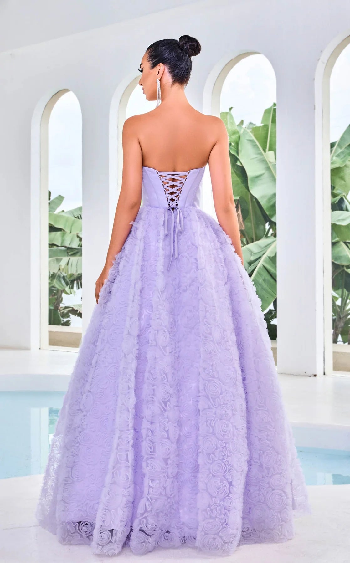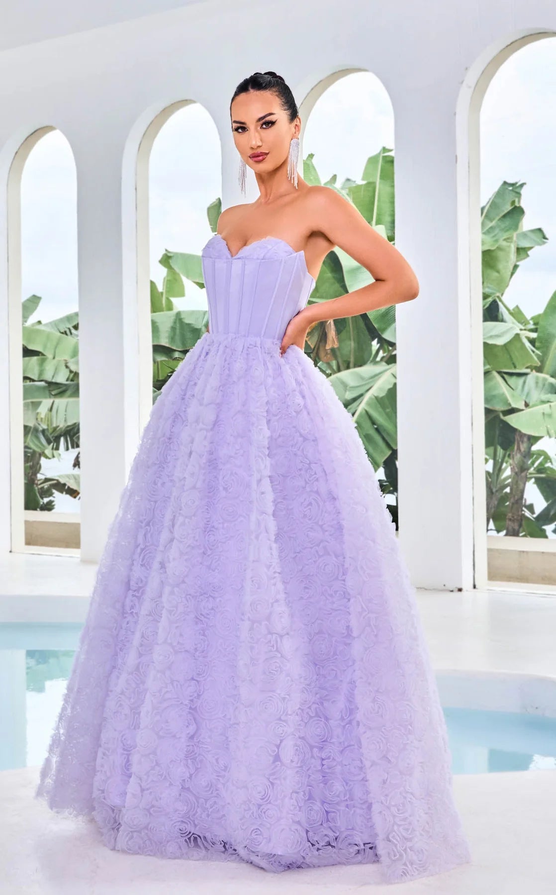 For an unforgettable presence, slip into the J24045 gown. Romantic and feminine, the sweetheart neckline is timeless grace. The A-line silhouette elegantly descends from the defined waist, forming a flattering outline that gently embraces the body before cascading into a voluminous and flowing skirt. This timeless design exudes a regal and refined quality, ensuring that you radiate both grace and sophistication with each step. Available in Lavender color.