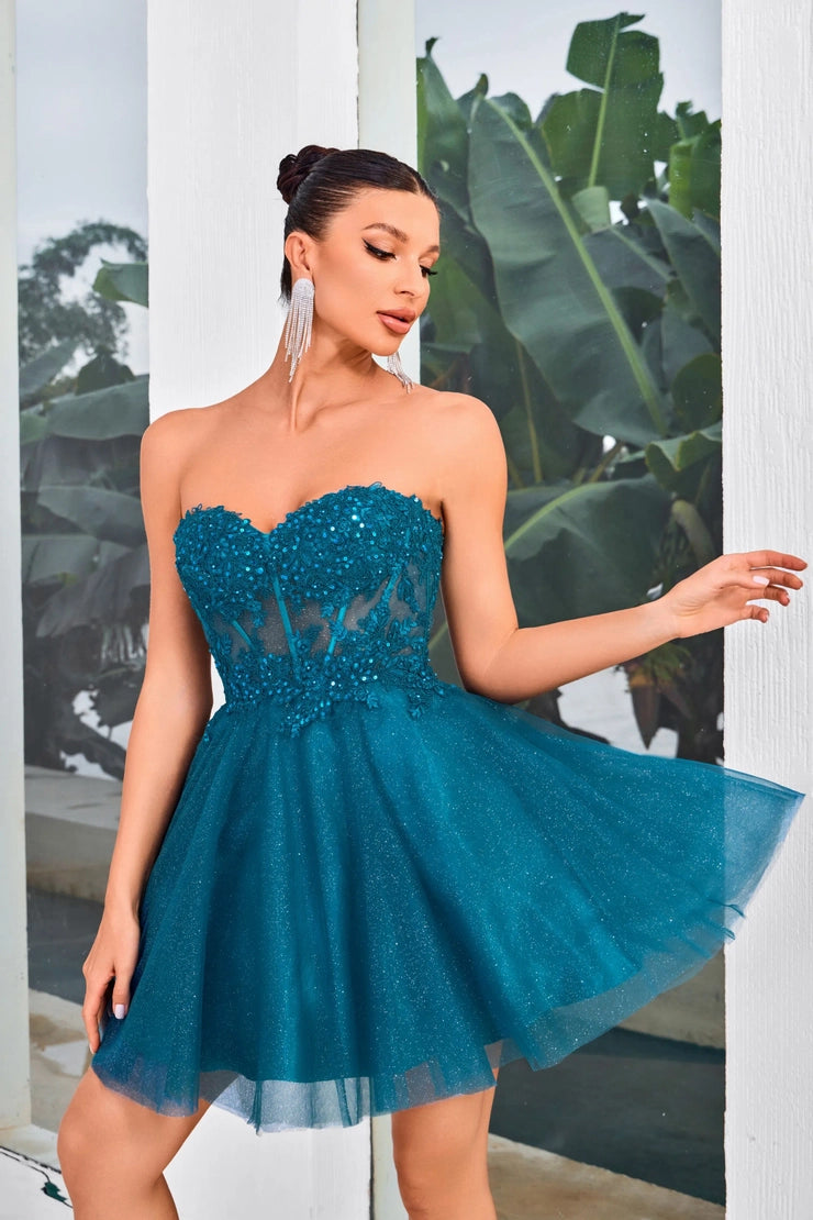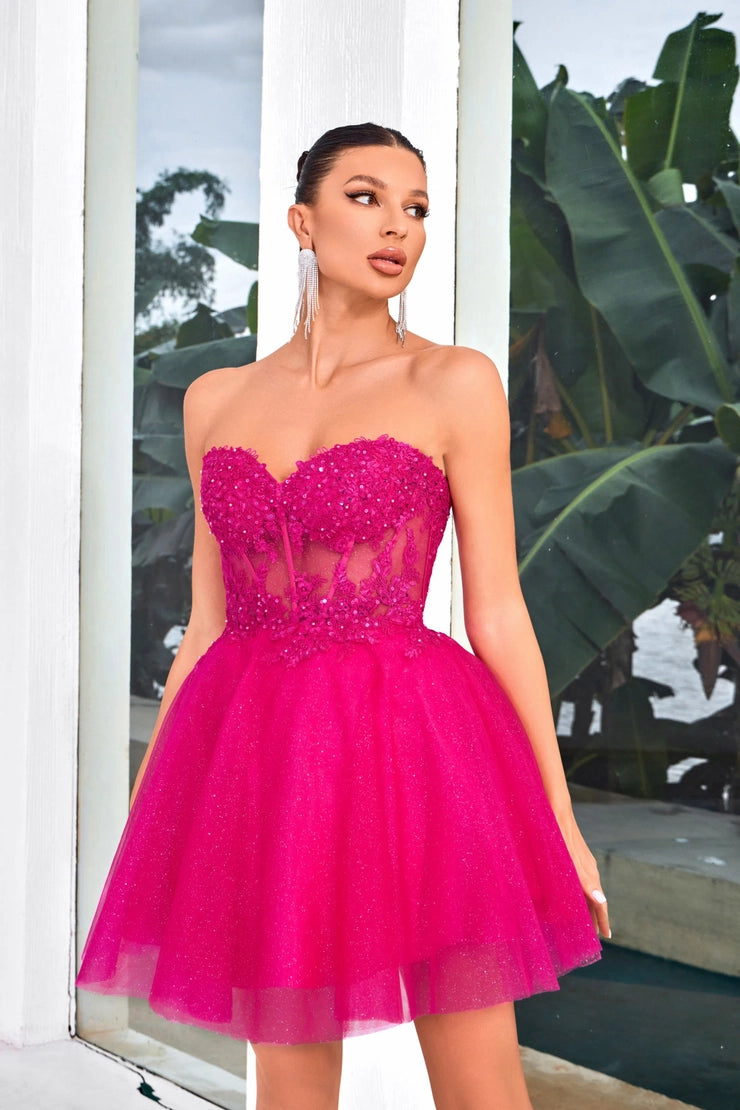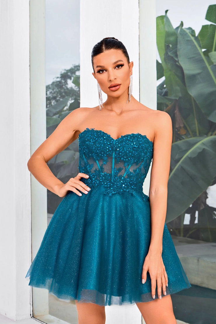 Indulge in timeless elegance with our J24080 dress. The tea length and A-line silhouette will accentuate your figure while the strapless sweetheart neckline adds a touch of allure. Available in hot pink, navy, and teal, this dress is perfect for any occasion.