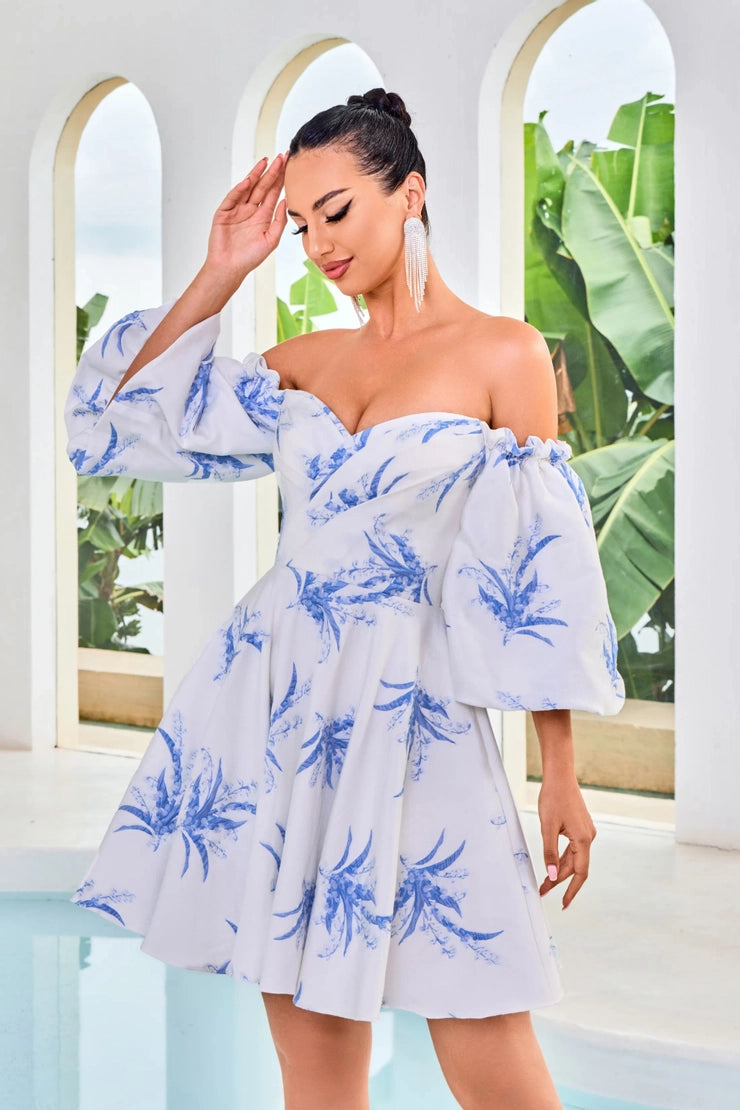 Indulge in timeless elegance with the J24095 dress. This exquisite dress boasts a tea-length cut, an A-line silhouette, and 3/4 sleeves for a flattering look. The sweetheart neckline adds a touch of romance, while the blue print adds a pop of color and charm. Perfect for any special occasion.