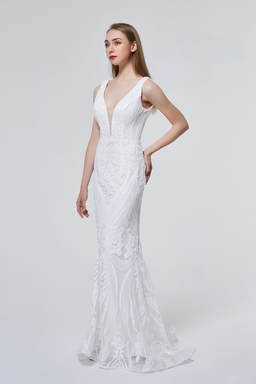 Capture the essence of love and elegance with the JA1006 mermaid wedding dress. This stunning floor length gown features straps and a fitted silhouette that will accentuate your figure. The open back adds a touch of glamour and grace, perfect for the modern bride. Walk down the aisle with confidence and grace in this exquisite gown.