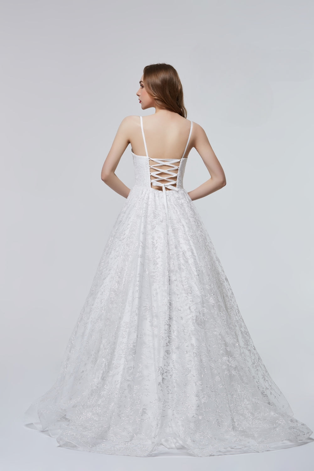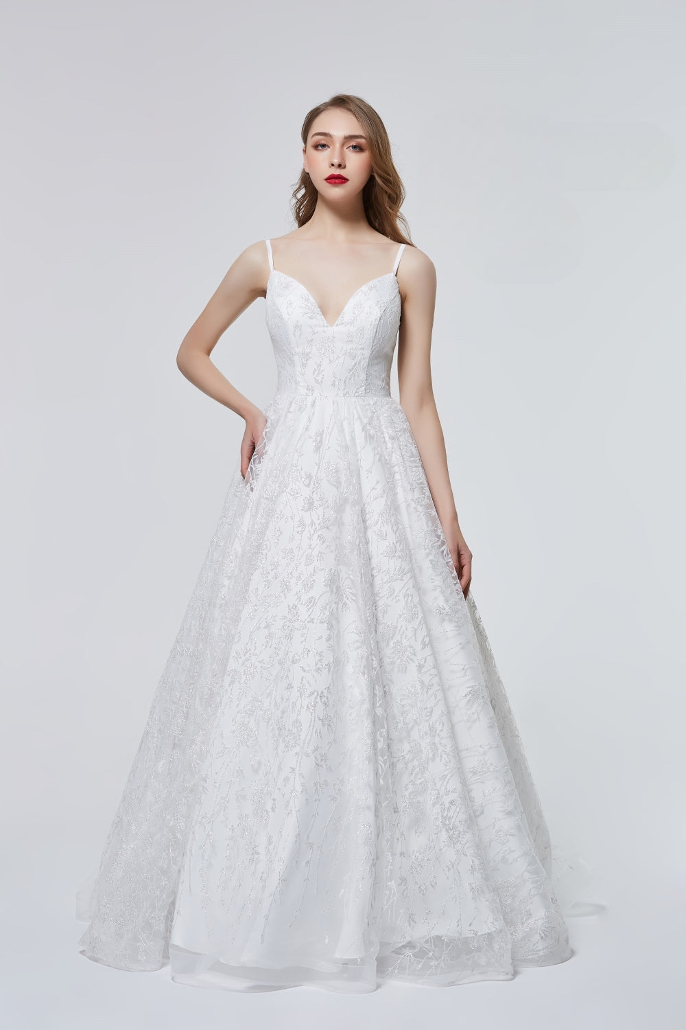 This elegant JA1008 wedding gown features a sweetheart neckline, floor length design, and delicate straps that create a romantic A-Line silhouette. Perfect for making a grand entrance on your special day. Luxurious, timeless, and exclusive.