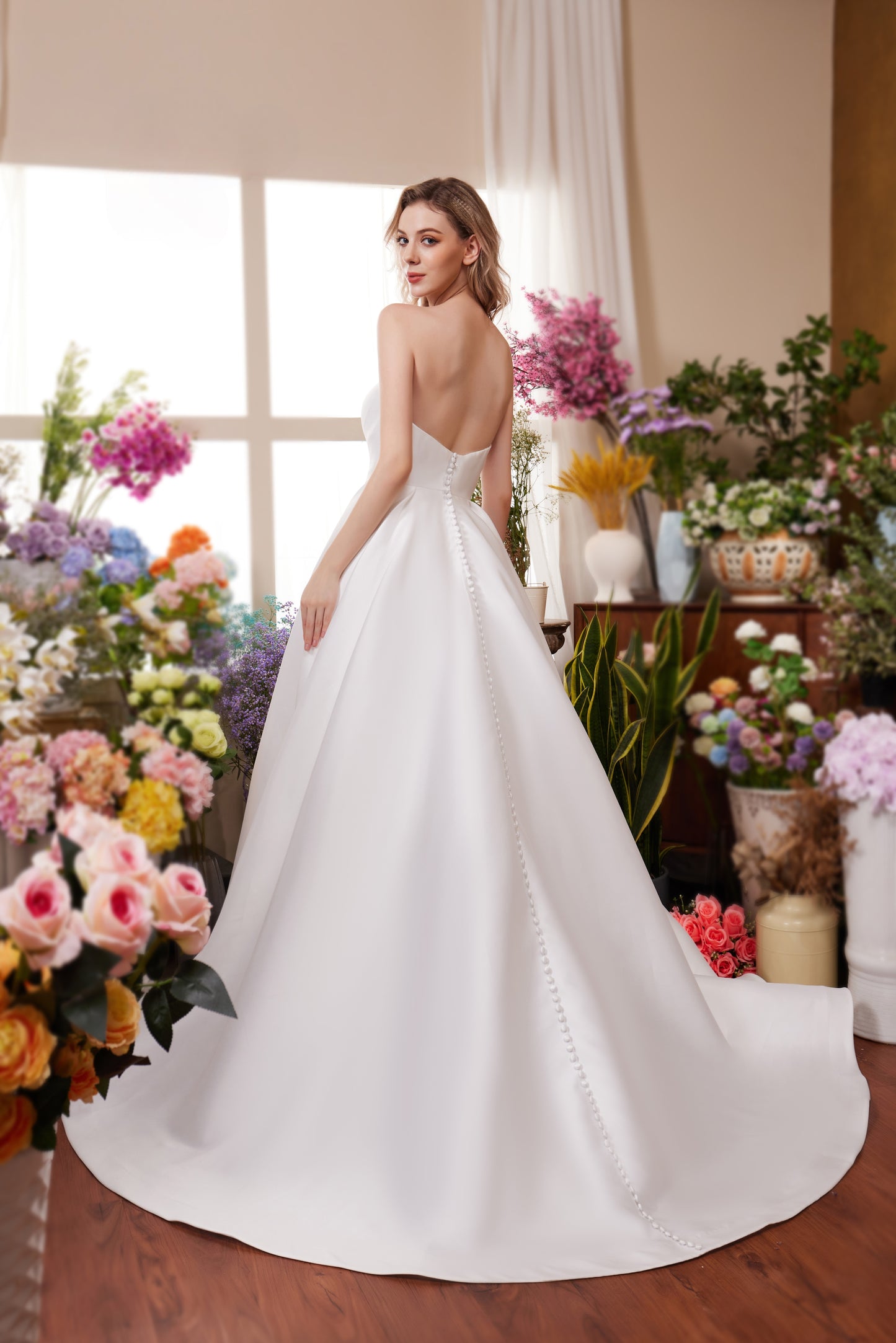 Indulge in the luxurious simplicity of the JA4009 floor length ball gown. Designed with a sleek zipper and elegant buttons, this strapless gown exudes sophistication. Experience the exclusivity of high fashion and feel like a true work of art in this stunning piece.