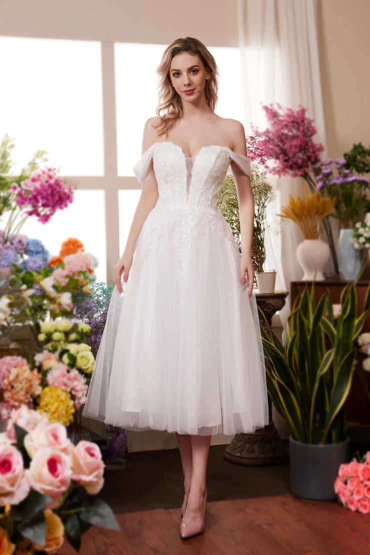 Indulge in luxury with our JA4010T wedding dress. This elegant midi dress features a flattering V-neckline and A-line silhouette, perfect for any body type. The ivory hue adds a touch of luxe to your special day, making you the center of attention. Say yes to this sophisticated and exclusive dress.