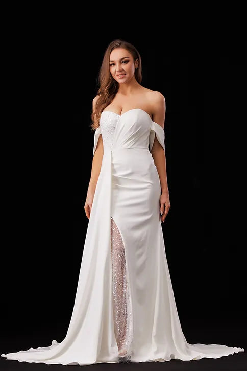 Indulge in elegance and luxury with our JA5002 wedding dress. Designed with a sleek, straight-line silhouette and a strapless, sweetheart neckline, this gown exudes sophistication. The ivory hue adds a touch of romance, making it the perfect choice for your special day. Elevate your bridal look with this luxe piece.
