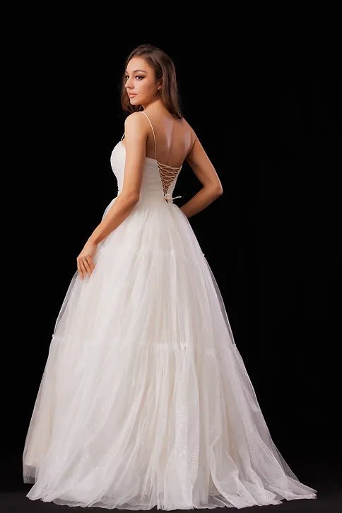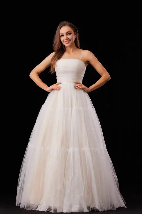 Indulge in the ultimate luxury of our JA5008 wedding dress. The A-Line silhouette and spaghetti straps create an elegant look, while the ivory hue exudes timeless beauty. Crafted with luxe materials, this dress is perfect for the sophisticated bride who desires a classic and refined aesthetic.