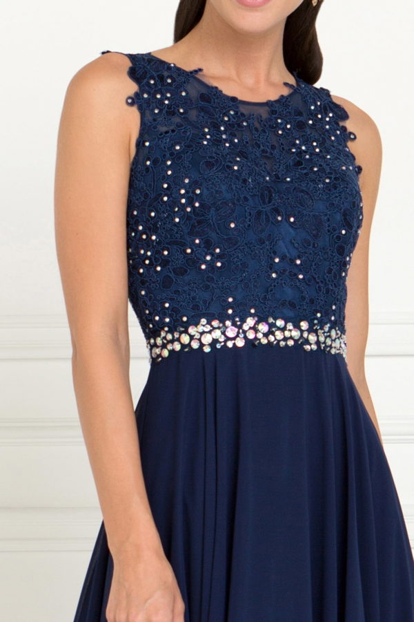 Indulge in luxury with our Jewel Embellished Lace Top Chiffon Long Dress. With intricate lace and dazzling jewel embellishments, this dress exudes elegance and class. Float gracefully in the lightweight chiffon material, perfect for any special occasion. Elevate your style and be the envy of all with this stunning dress.