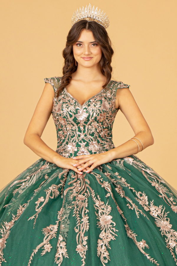 Sequin Glitter Embellished Quinceanera Dress w/ Corset Back