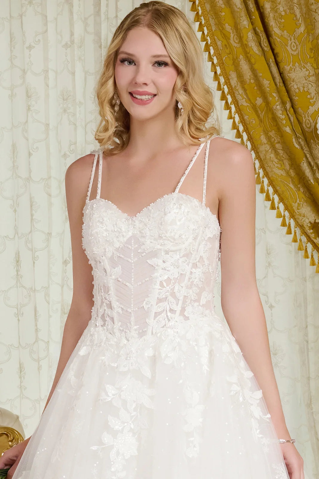 Spaghetti Straps, Sweetheart Neckline Bodice A-Line Wedding Gown