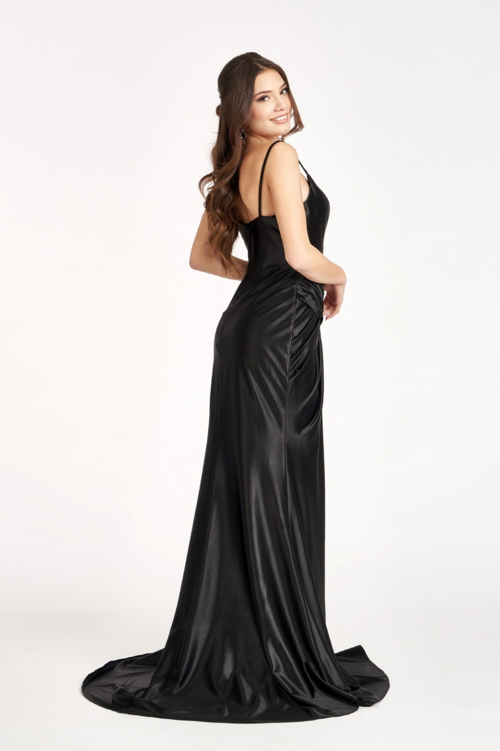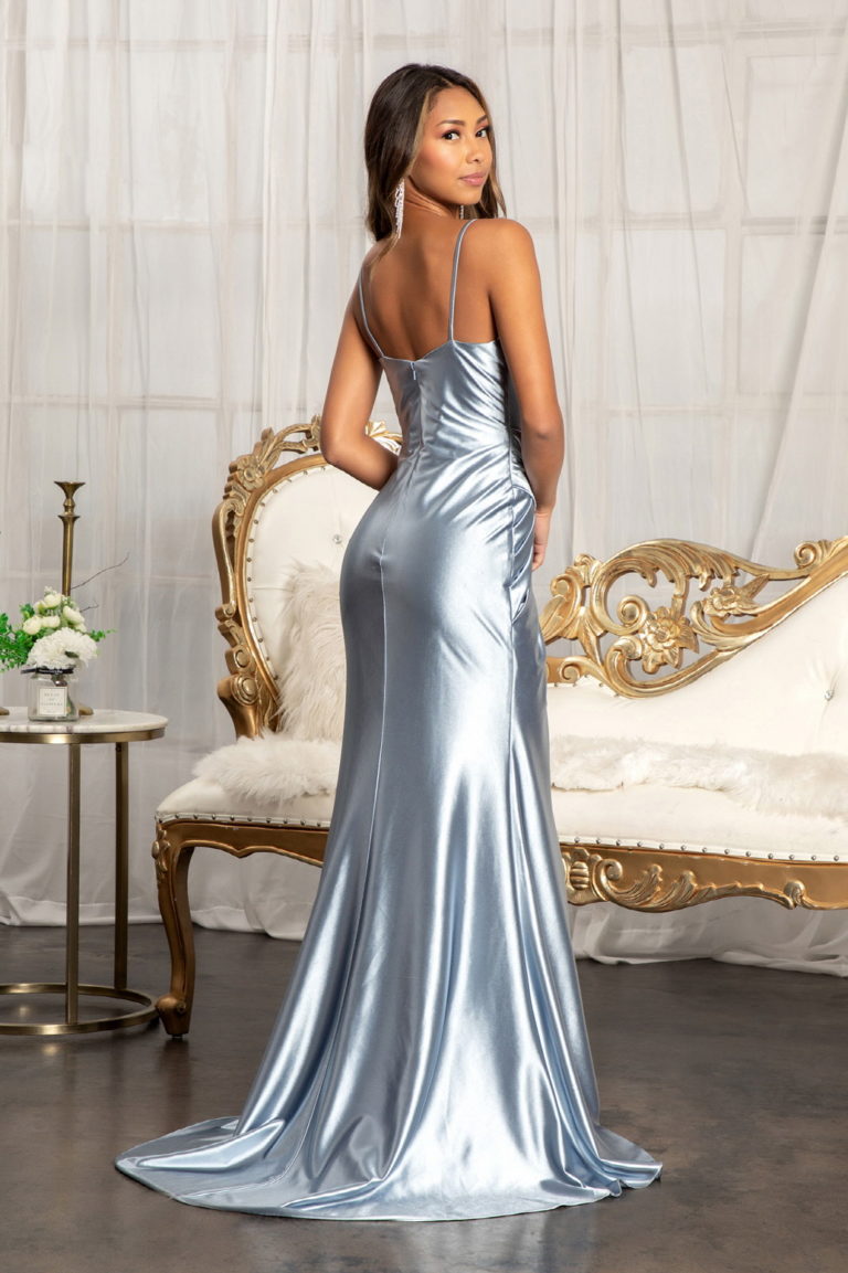 Sweetheart Satin Mermaid Dress w/ Open Back and Side Gathered Waistline